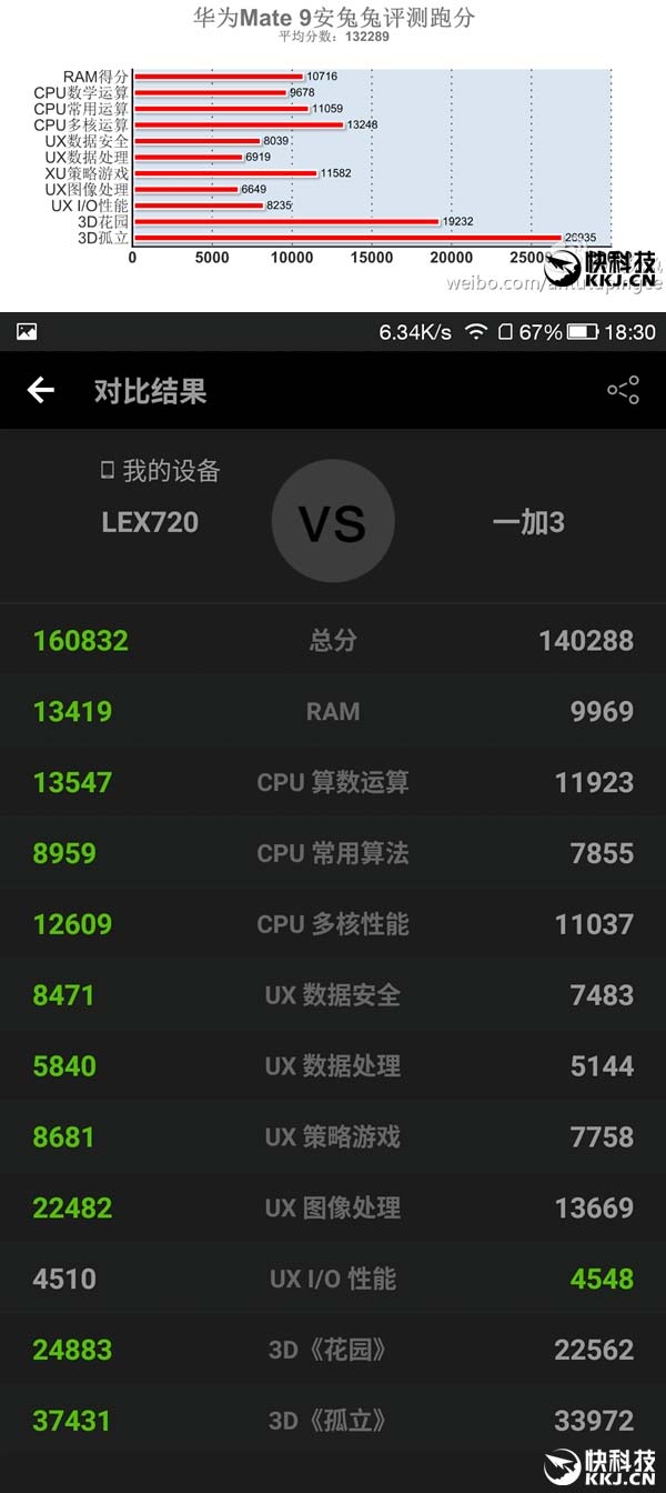 Теперь прошу взглянуть на графики ниже. Они составлены на основе результатов теста фаблета Huawei Mate 9 в AnTuTu Benchmark: