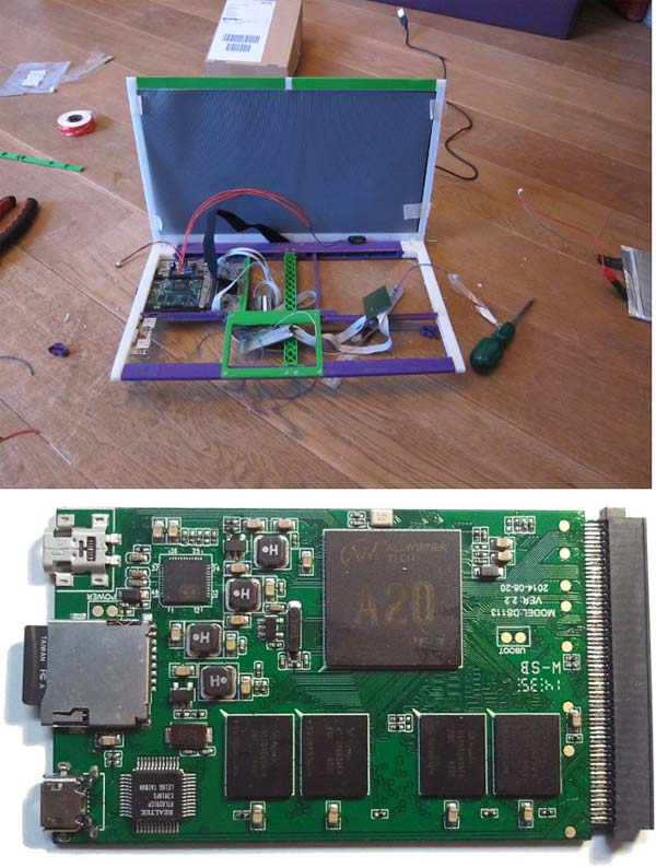 Ведущая борьбу с электронными отходами компания Rhombus Tech поделилась фото и данными о Libre Laptop, самостоятельно собираемом ноутбуке на основе EOMA68 CPU Card (в данный момент используется Allwinner A20). В качестве накопителя выступает карта microSD, экран имеет диагональ 15.6" и разрешение 1366x768, в качестве трекпада задействован 4.3" сенсорный ЖК экран ёмкостного типа.