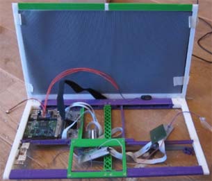 Также используется клавиатура от Chicony, батарея от электровелосипеда на 10000 мАч, обеспечивающая от 6 до 8 часов работы. В наличии один внешний порт USB 2.0 и два внутренних для подключения WiFi, 3G, Bluetooth и накопителей. Вся эта сборная солянка использует ПО с открытым кодом, например Linux в качестве ОС, корпус собирается из распечатанных на 3D принтере частей, крышка сделана из бамбука.