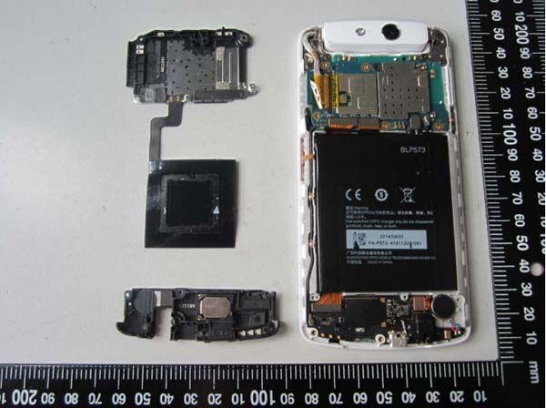 Начнём с устройства Oppo N1 Mini. Аппарат имеет размеры 148.4x72.2x9.2мм, весит 151 грамм с учётом батареи на 2140 мАч. У изделия 5" TFT экран с разрешением 1280x720, 13МП тыловая камера, работает смартфон в сетях GSM, WCDMA и LTE-FDD.