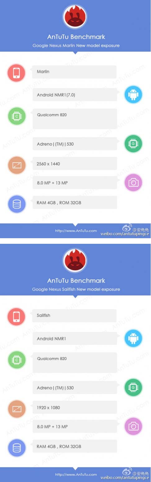 Сведения об аппаратах Google Nexus Marlin и Sailfish из AnTuTu: