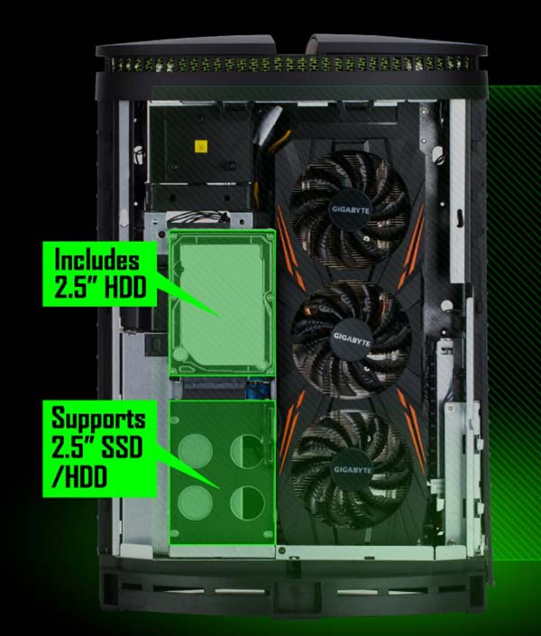 Новинка от Gigabyte получила имя BRIX Gaming GT, устройство определённо можно отнести к компактным игровым ПК, ведь габариты аппарата составляют 276x384x128мм. Основой аппарата стал процессор Intel Core i7-6700K, объём оперативной памяти DDR4 SO-DIMM 2133МГц равен 32 гигабайтам, в качестве накопителя используется связка из 240ГБ M.2 SSD и 1ТБ 2.5" HDD, плюс есть место для ещё одного 2.5" винчестера или SSD.