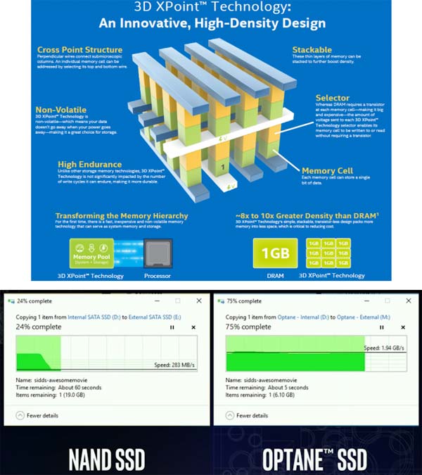 В рамках IDF в Шеньчжени компания Intel продемонстрировала скорость работы использующего технологию 3D XPoint / Optane накопителя, результат впечатляет: