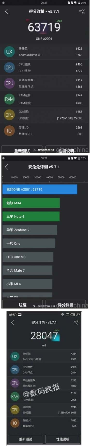 В ранее опубликованном материале о спецификациях и производительности устройства OnePlus 2 фигурировали не впечатляющие цифры, теперь же утверждается, что оснащённое Snapdragon 810 v2.1 (MSM8994) устройство легко набирает 63719 очков, что явно больше старого результата в 51000 очков с хвостиком.
