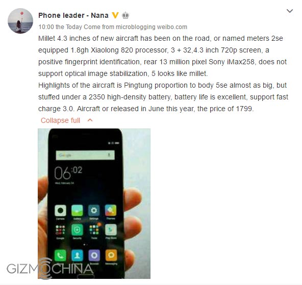 Видимо решившая пойти по стопам Apple с её iPhone SE компания Xiaomi готовится представить миру свой 4.3" смартфон, данные стали доступны с Weibo: