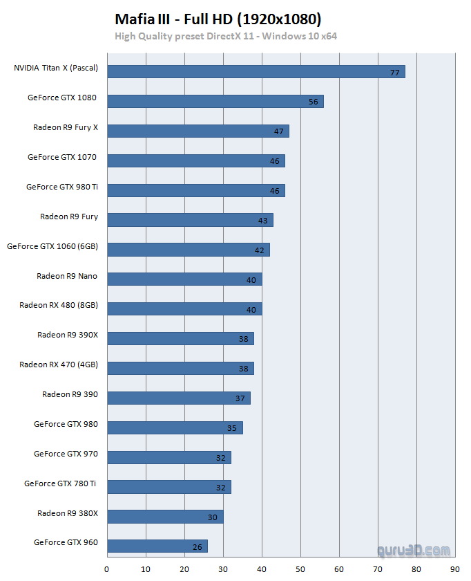 Третья "Мафия" на удивление прожорлива (или плохо оптимизирована) до аппаратной "начинки" ПК, поэтому на довольно-таки достойных графических адаптерах показывает не самые выдающиеся результаты. Автор материала рекомендует использовать для игры видеокарты уровнем не ниже Radeon RX 470 или же GeForce GTX 1060.