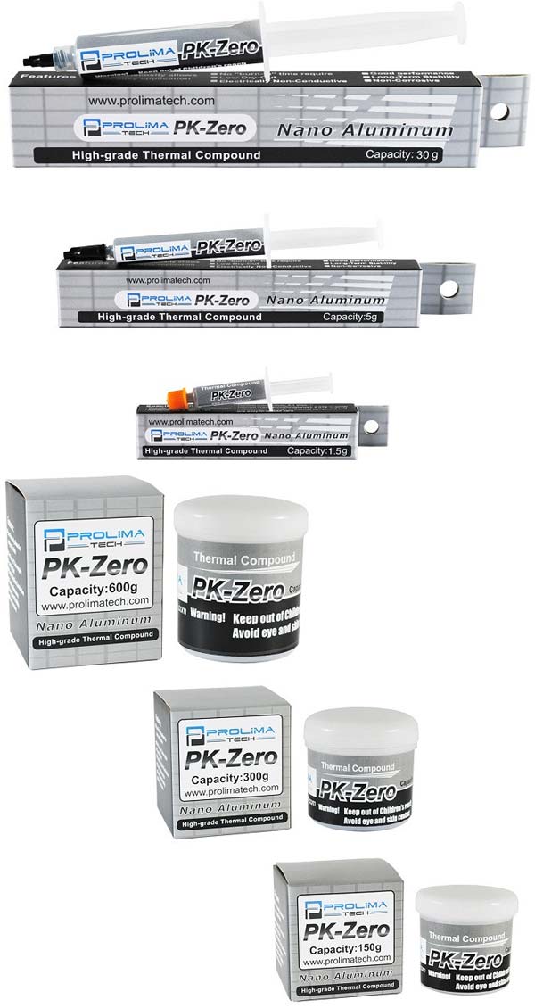 Компания Prolimatech представила общественности новый термоинтерфейс PK-Zero, основанную на алюминии термопасту для энтузиастов. Изделие обладает теплопроводностью 8 Вт / (м · ° С), тепловым сопротивлением 0,019 ° C-in² / Вт, диэлектрической проницаемостью 4 кВ / мм.