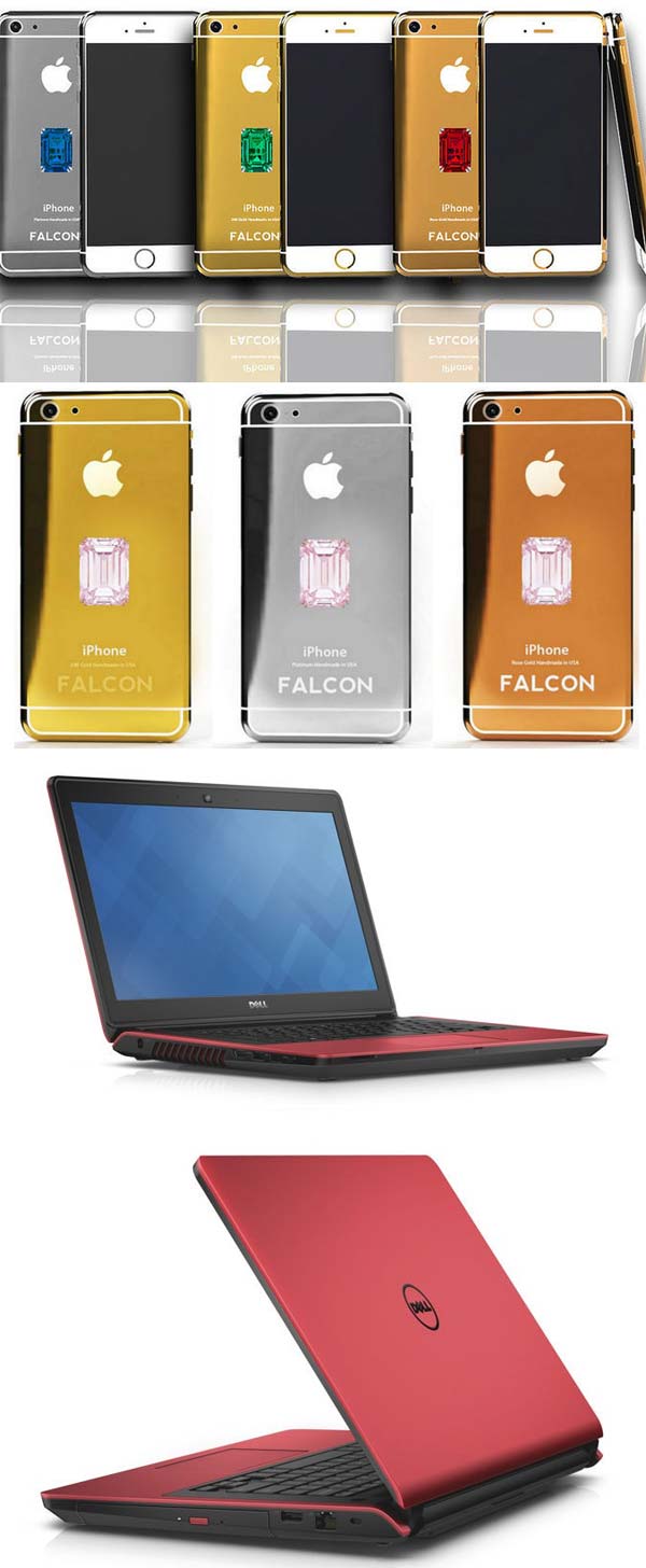 Предлагаю узнать стоимость обрамлённых драгоценными камнями и металлами iPhone 6, а также взглянуть на новый ноутбук от Dell.