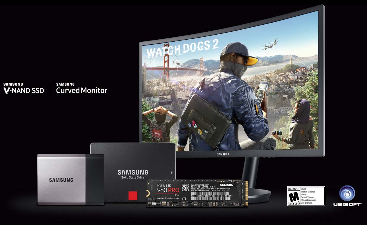 Иностранные СМИ раструбили о том, что Samsung раздаёт игру Watch_Dogs 2 совершенно бесплатно. В чём подвох? Эта акция касается лишь новых покупателей её продукции, если точнее - твердотельных накопителей и мониторов. Вот список девайсов, покупка которых даёт право на цифровую копию игры Watch_Dogs 2: