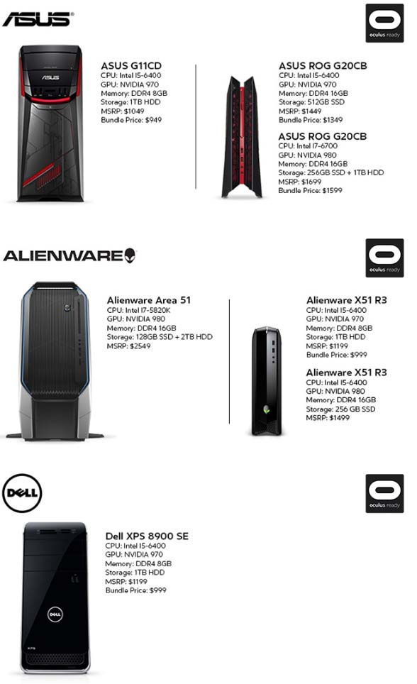 Oculus вывесила список совместимых с шлемом виртуальной реальности Rift игровых компьютеров, на которые можно оставить предзаказ в ряде онлайн магазинов: