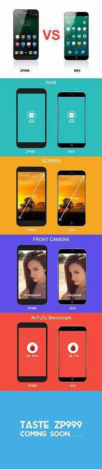Журналисты с ресурса GizChina поделились с нами следующим графическим файлом, на котором по некоторым позициям сравниваются аппараты ZP999 и MX4:
