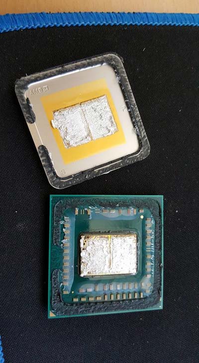 В руки оверклокеру Nam Dae Won попало несколько APU 7-го поколения (Bristol Ridge) от AMD, этот деятель не долго думая снял теплораспределительные крышки, дабы мы могли посмотреть на кристаллы новинок. Фото: