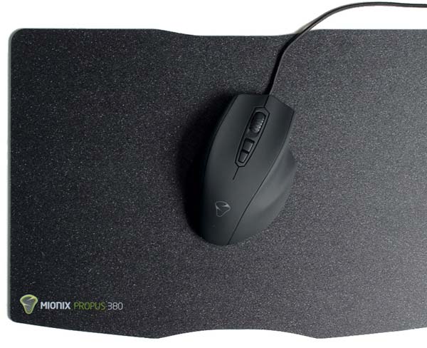 Компания Mionix представила своё новое творение народным массам. Им стал коврик для мышки, получивший имя Propus 380. Размеры изделия: 380x260x4мм, т.е. изделие весьма крупное. Коврик обеспечивает максимальную точность позиционирования курсора/прицела, причём без ущерба скорости движения мышки по поверхности. Покрытие коврика выглядит необычно, но с практической точки зрения ничего не решает, это лишь декоративный элемент новинки. Коврик не боится воды, его можно скручивать в трубочку, а основание выполнено из поливинил хлорида, дабы изделие не скользило по столу.