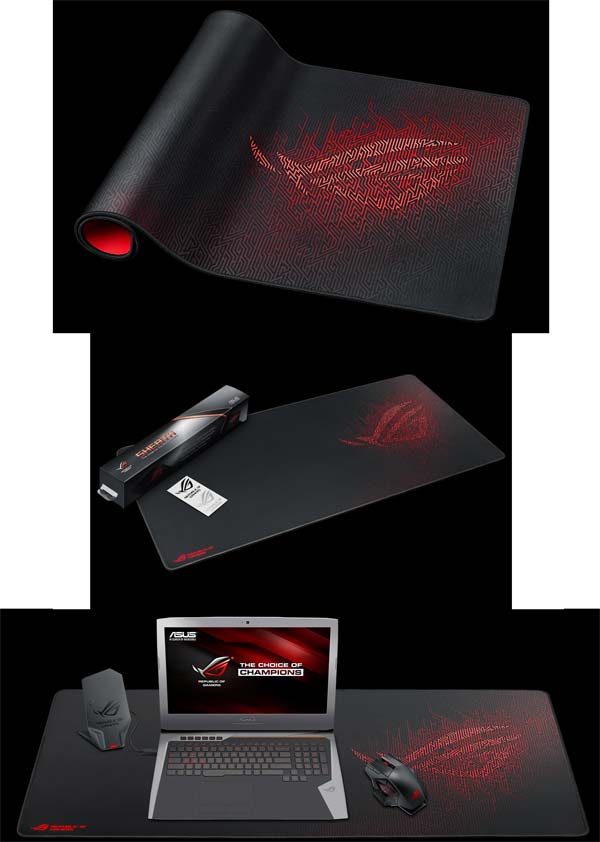 А на рендерах ниже нам демонстрируют огромный коврик для мышки ROG Sheath от компании ASUS: