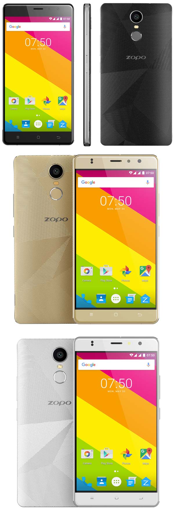 Корпус изделия Zopo изготовлен из металла и пластика, питается устройство от литий-полимерной батареи на 2300 мАч. В наличии два слота для SIM карт - Micro+Nano, работает аппарат в сетях 2G, 3G и 4G, поддерживает WiFi, Bluetooth и GPS. Размеры устройства составляют 153x77.8x8.5мм, вес равен 150 граммам.