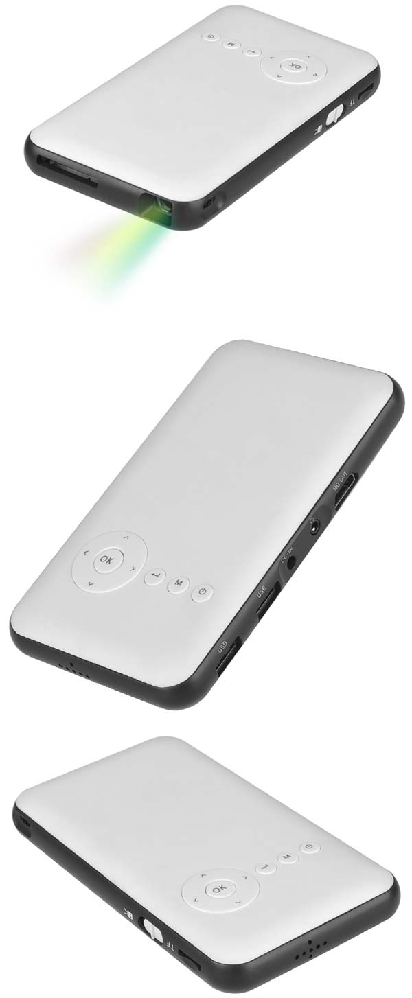 Мини DLP проектор M6 основан на 4-ядерной SoC RK3128, обладает 8ГБ расширяемой флеш памяти и 1ГБ оперативной, управляется Android 4.4. Изделие проецирует изображение на расстояние от 1 до 5 метров с диагональю от 30 до 120 дюймов, "родное" разрешение - 854x480, что не мешает показывать и Full HD видео.