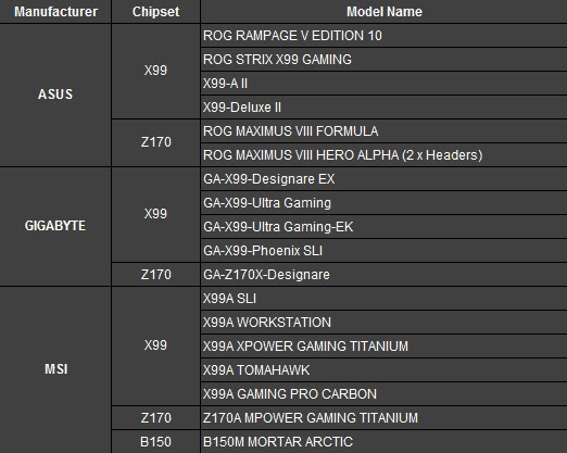 Раз уж про саму память GeIL EVO X DDR4 мы знаем всё с технической точки зрения, стоит взглянуть на следующую табличку, демонстрирующую совместимость с теми или иными материнскими платами от крупнейших компаний, их производящих для рынка домашних ПК: