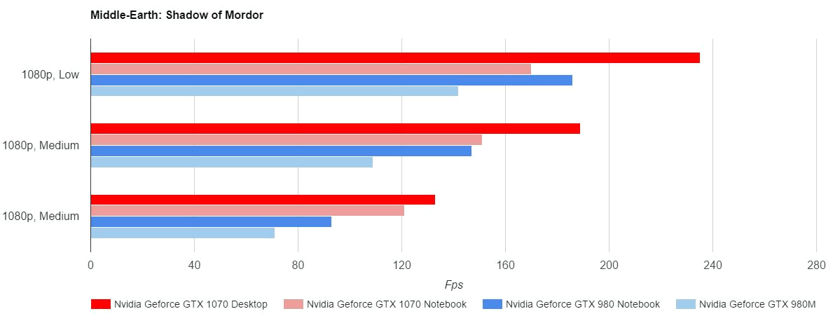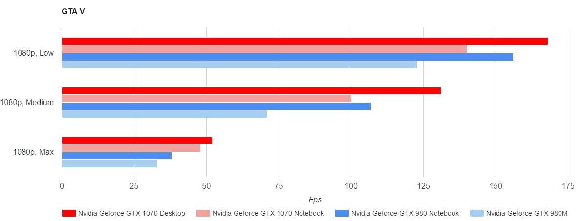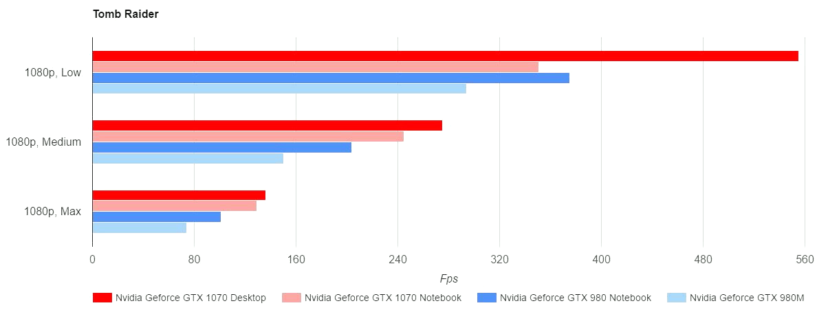 А вот результаты тестов мобильного варианта видеокарты GeForce GTX 1070, предоставленные сайтом Laptopmedia: