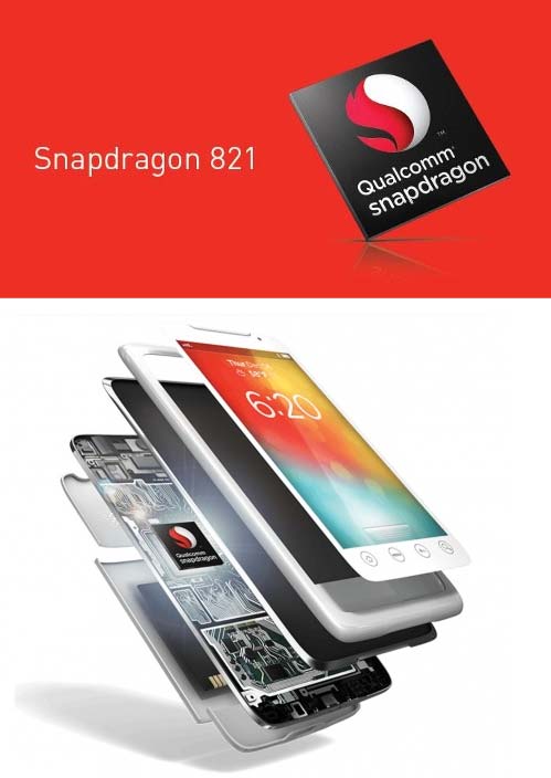 Qualcomm собралась с силами и представила-таки новое решение семейства Snapdragon, выступающего под номером 821. SoC четырёхъядерная, в ней задействовано два ядра Kryo работающих на тактовой частоте 2.34ГГц, ещё два на 2.19ГГц, графическое решение Adreno 530 функционирует на 653МГц. Qualcomm утверждает, что новый чип на 5% более энергоэффективен и на 10% более шустр чем Snapdragon 820, поддерживает двойной PDAF, Daydream, может работать с 28МП камерами (у 820-й модели ограничение на 25МП). Нам также рассказывают о более быстрой скорости загрузки приложений, более плавном скроллинге, наличии 600 Мб/с X12 LTE модема, поддержке Qualcomm Quick Charge 3.0 и Extended Laser Auto-Focus Ranging.