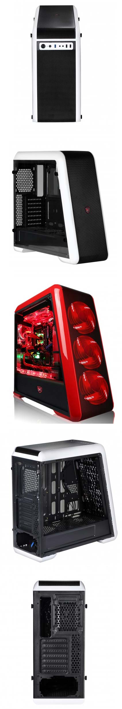 Корпус EMPIRE поставляется без блока питания, зато сразу с двумя 120мм вентиляторами с красной LED подсветкой, они находятся с фронта. Решение доступно в белом и чёрном / чёрном и красном цветах, обладает съёмными пылевыми фильтрами, нижним расположением БП, 25мм места для укладки кабелей и прозрачным окошком в боковой стенке. Лимит на длину видеокарты - 400мм, на радиатор СВО - 360мм. Всего в корпусе пять мест (без учёта двух занятых) для установки 120мм вентиляторов.