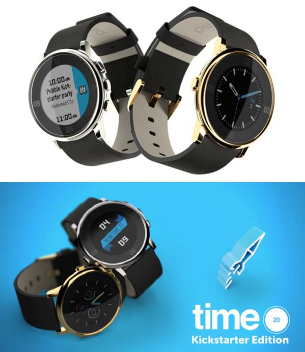Нам предлагается взглянуть на умные часы Pebble Time Round Kickstarter Edition, представлены которые в золотистом и серебристом вариантах: