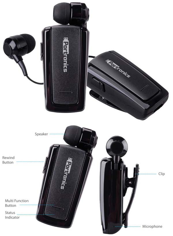 Решение от Portronics получило имя Harmonics 101, оно является беспроводной гарнитурой, соединение которой с умными телефонами осуществляется по Bluetooth 3.0. Размеры устройства составляют 47x26x14.5мм, наушник отсоединяемый, на корпусе можно найти кнопку перемотки и мультифункциональную клавишу, а также индикатор статуса, прищепку и микрофон. От встроенной литий-полимерной батареи изделие работает до 5 часов в режиме разговора и до 110 часов в режиме ожидания. Устройство позволяет принимать/совершать звонки нажатием лишь одной кнопки.