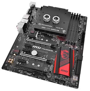 А вот как выглядит водоблок Pacific M3 от Thermaltake, водружённый на материнскую плату Z170A GAMING M5: