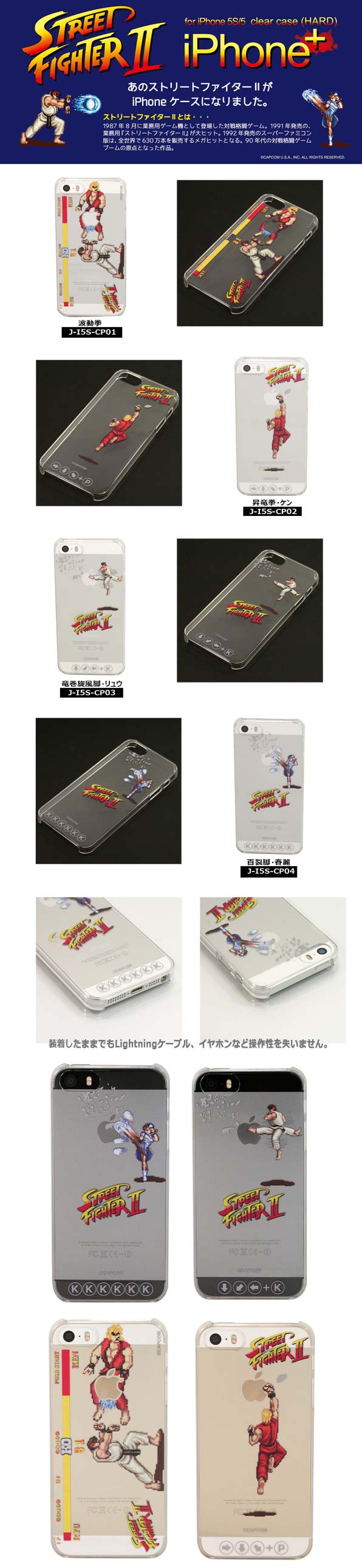 Японская компания Fujimoto Dengyo приготовила коллекцию чехлов для популярных смартфонов Apple последнего поколения. Арт на них изображает персонажей легендарного файтинга Street Fighter II, мы увидим Рю, Чун Ли и Кена, выполняющих свои фирменные приёмы (хадокен, шорюкен и другие). Серия новинок именуется STREET FIGHTER II iPhone+, доступна в трёх цветах, каждый чехол стоит 2300 йен (~800 рублей).
