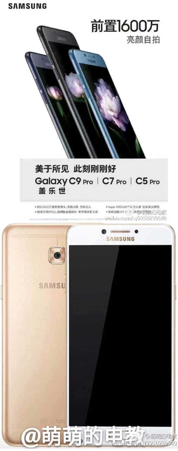 Рендеры ниже показывают нам умные телефоны Galaxy C5 Pro и C7 Pro, а заодно и C9 Pro, хотя последний нам не интересен (ибо он уже представлен официально):