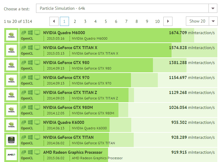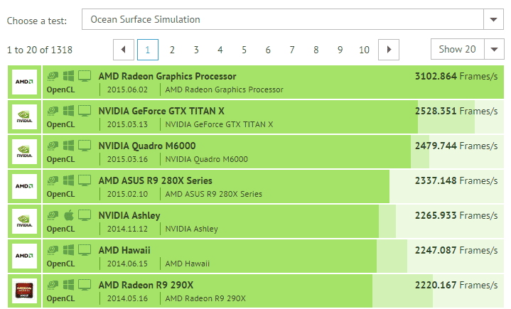 Сначала предлагаю посмотреть на результаты бенчмарков AMD Radeon Fury (Fiji) в OpenCL (и не только, судя по всему) приложениях: