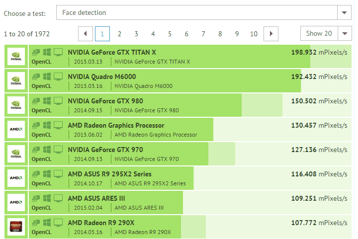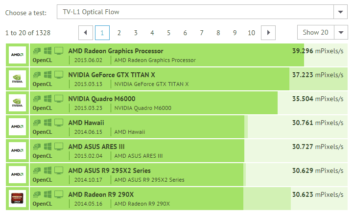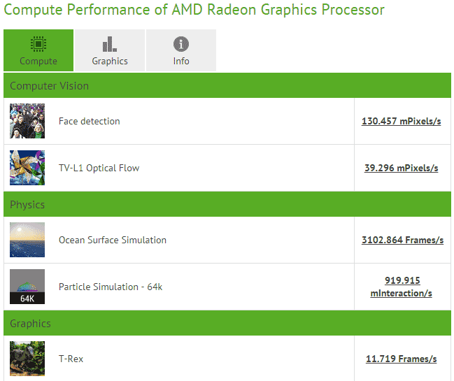 Были подтверждены данные о количестве CU (вычислительных блоков), их 64, значит потоковых процессоров 4096, как и предполагалось ранее. Согласно итогам тестов, новинка от AMD быстрее GTX TITAN X в Ocean Surface Simulation и TVL1 Optical Flow, но медленнее в тестах Face Detection и Particle Simulation.
