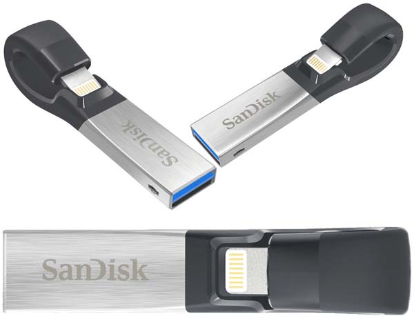 Компания SanDisk продолжает расширение семейства флешек iXpand, на этот раз новинка называется просто iXpand Flash Drive. Решение использует интерфейс USB 3.0 для передачи данных и питания, подходит как для ПК, так и для Mac. Более того - благодаря наличию второго коннектора (Lightning), изделие совместимо и с управляемыми iOS устройствами производства Apple, т.е. с iPad и iPhone во всём их многообразии. Выпущено обновлённое приложение iXpand, служащее для различных целей, например автоматического бэкапа фото и видео из памяти продукта Apple на флешку при подключении последней. Ёмкость накопителей серии составляет 16, 32, 64 и 128 гигабайт.