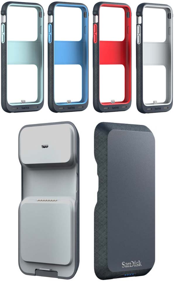 Итак, Sandisk явила миру аксессуары iXpand Memory Case и Battery Pack. Первый представляет собой защитный бампер, позволяющий расширять память iPhone 6/iPhone 6S, а второе изделие добавляет 1900 мАч к ёмкости аккумуляторной батареи продукта Apple. Объём флеш памяти с iXpand Memory Case может быть 32ГБ, 64ГБ или 128ГБ, корпус бампера сделан из прочного пластика снаружи и резины изнутри, это должно уберечь дорогущий умный телефон от последствий неаккуратности пользователя. С помощью особого приложения можно заставить iPhone напрямую использовать память решения, например для съёмки фото и видео.