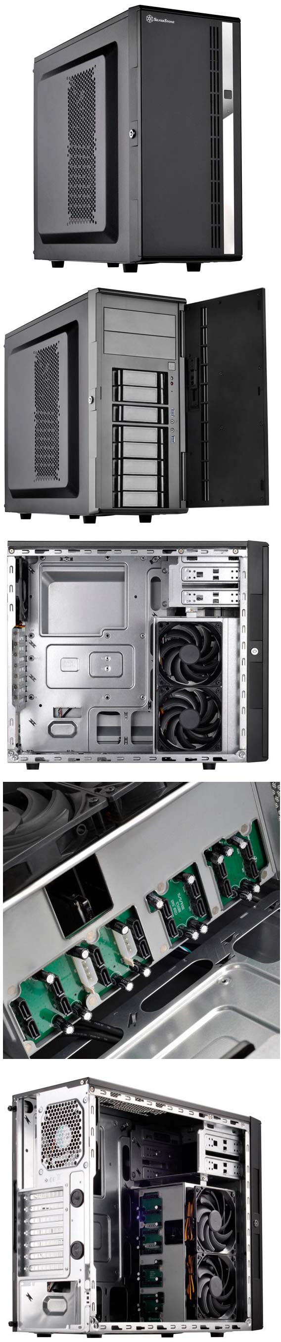 Для удовлетворения потребностей энтузиастов, нуждающихся в гибких компактных башенных корпусах для NAS, SilverStone создала CS380. Благодаря возможностям размещения стандартных компьютерных компонентов, таких как ATX материнские платы, блоки питания ATX (PS2), приводы 5,25", карты расширения стандартного размера и даже системы водяного охлаждения, CS380 легко удовлетворит требованиям любого пользователя NAS. Корпус оснащается вентиляторами диаметром 120мм и легкосъёмными фильтрами, что помогает избежать попадания пыли внутрь, как и в других корпусах SilverStone премиального класса. Также имеются функции безопасности, такие как замок на дверце и кнопка отключения питания.