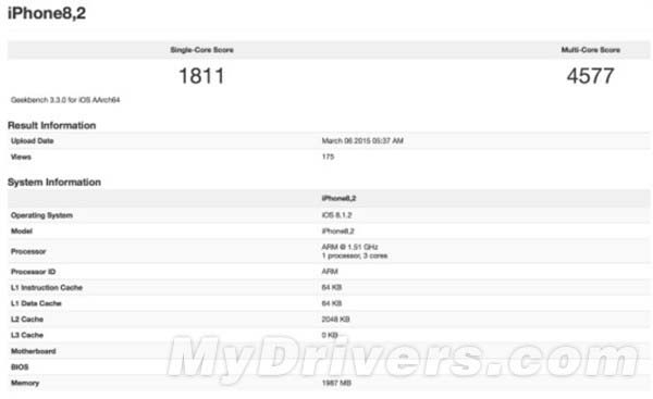 Аппарат основан на 3-ядерной SoC A9, работающей на тактовой частоте 1ГГц, что не мешает ей выступать на уровне лучших решений управляемых Android. Объём оперативной памяти равен 2ГБ, чего достаточно для большинства задач. Изделие мало чем удивляет в одноядерном тесте, а вот во многоядерном набивает куда больше чем iPhone 6 Plus, результат радует - 4577 очков.