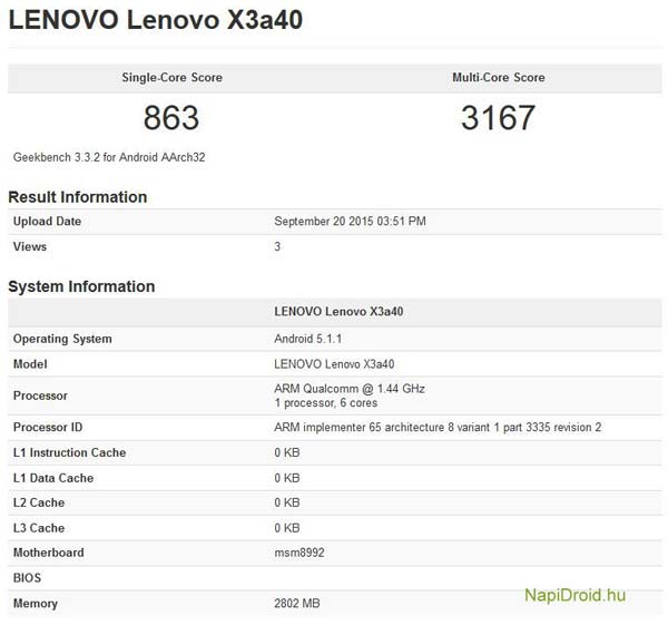 Некоторые спецификации уже знакомого нам смартфона Lenovo Vibe X3 подтверждены скриншотом из GeekBench: