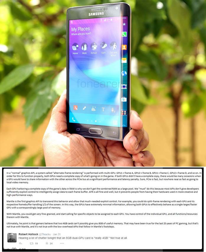 Мастер промывания мозгов (глава отдела технического PR компании AMD) Robert Hallock поделился весьма интригующими данными, касаемо возможностей Mantle и даже DX12. Оказывается, эти API смогут использовать суммарную видеопамять двух и более видеокарт, чего ранее доступно не было (две карты с 4ГБ не давали в сумме 8ГБ памяти). Такое положение дел может сильно повлиять на рынок Multi-GPU решений, а также "двуглавых" видеокарт.