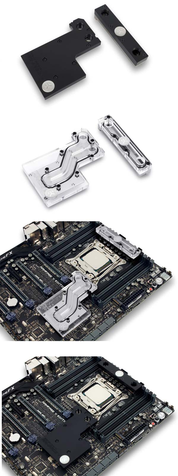 А вот как выглядит водоблок EK-FB KIT ASUS R5-E10, созданный компанией EK Water Blocks специально для материнской платы ASUS Rampage V Edition 10:
