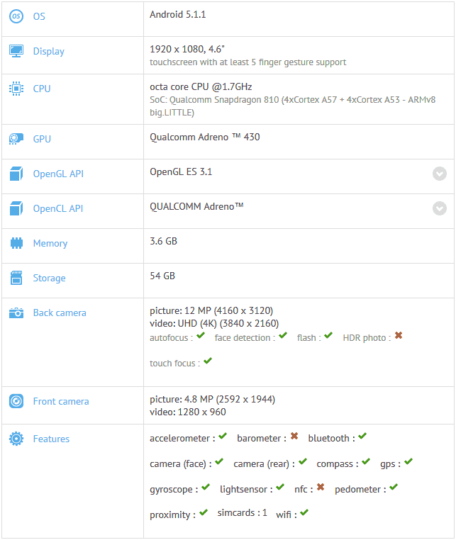 Итак, OnePlus 2 Mini засветился в бенчмарке GFXBench, устройство обладает 4.6" Full HD экраном, основано на 1.7ГГц восьмиядерной SoC Snapdragon 810 с графикой Adreno 430, имеет 4 гигабайта оперативной памяти и 64 гигабайта памяти встроенной, вероятно расширяемой. Тыловая камера получила 13МП сенсор с диафрагмой f/2.0 и двойной светодиодной вспышкой, а также лазерным автофокусом и оптической системой стабилизации изображения, также решение поддерживает запись видео в формате 4K; камера фронтальная получила 5МП сенсор. Без WiFi и Bluetooth не обошлось, о поддержке NFC или же о количестве слотов для SIM карт информации нет.