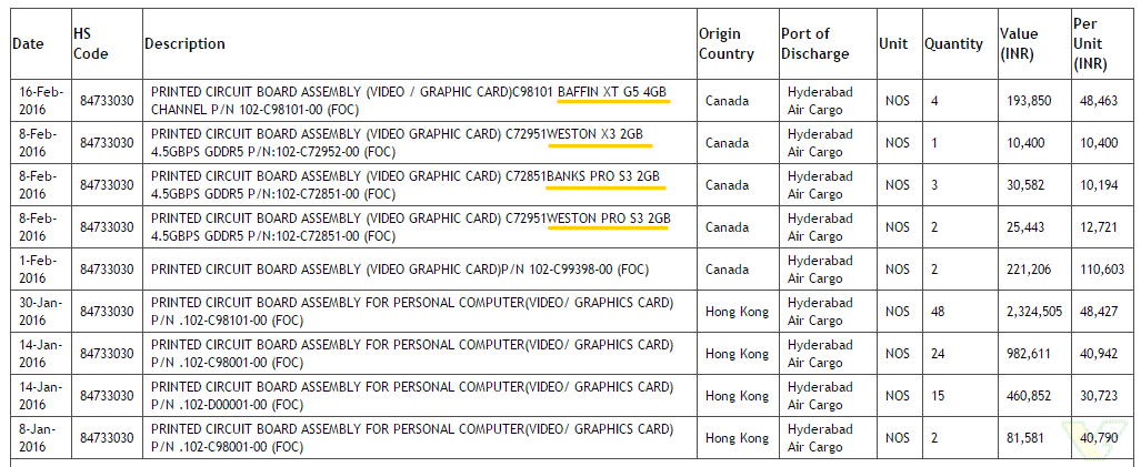 Частично эти данные получены из вот этой таможенной декларации Zauba: