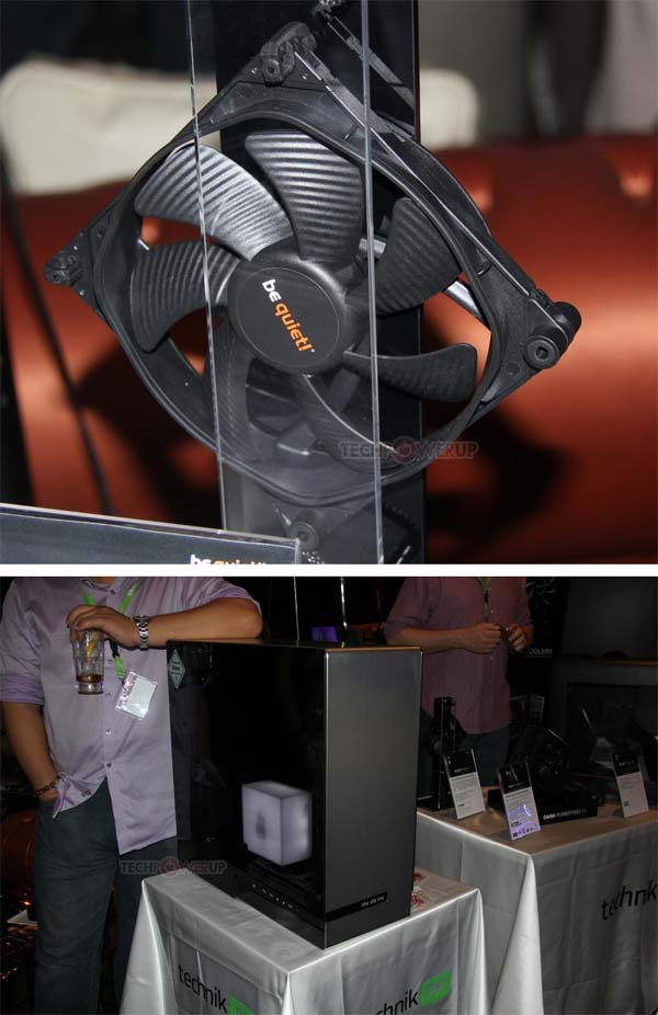 Итак, нам показывают третье поколение вентиляторов Silent Wings от be quiet! Производитель описывает устройства как "практически бесшумные", в продаже будут доступны как модели с ШИМ/PWM управлением, так и подключаемые через 3-пиновый коннектор и поставляемые в наборе с регуляторами напряжения (ограничителями скорости вращения лопастей). Разумеется, пользователи смогут выбирать между 120мм и 140мм моделями. Изменения коснулись строения лопастей, улучшение подшипника и крепления, иными словами - всё брошено на достижение тишины и эффективности работы, а также долговечности изделий серии Silent Wings 3.