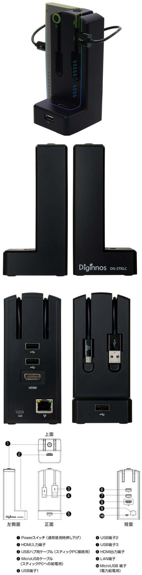 На фото ниже можно увидеть док-станцию DG-STKLC от японской компании Dospara, предназначен агрегат для HDMI-"стиков", т.е. тех самых миниатюрных ПК с подключением по HDMI, питающихся по USB: