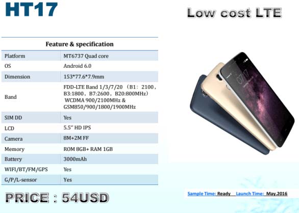 Как можно заметить, фаблет HT17 весьма доступен по цене - 54 доллара США, аппарат увидит свет уже в текущем месяце.