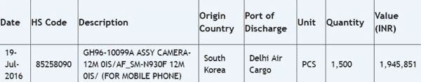 Декларация с индийской Zauba подтвердила факт наличия у Samsung Galaxy Note7 двух 12МП тыловых камер (к слову - таких же, как у Samsung Galaxy S7):