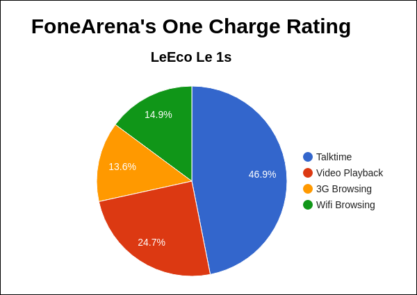 Итог тестов LeEco (Letv) Le 1s - 7 часов 50 минут, это весьма средний результат для оборудованного аккумуляторной батареей на 3000 мАч аппарата.