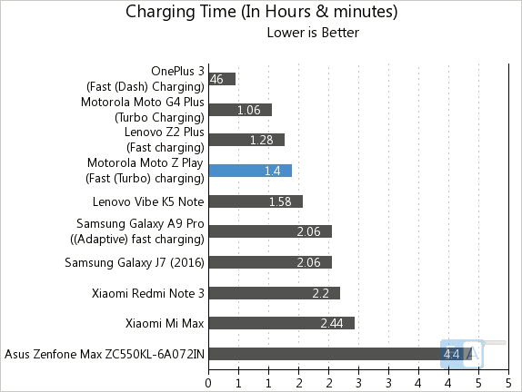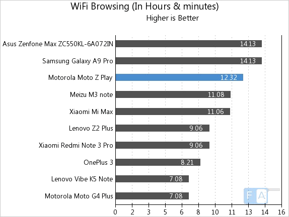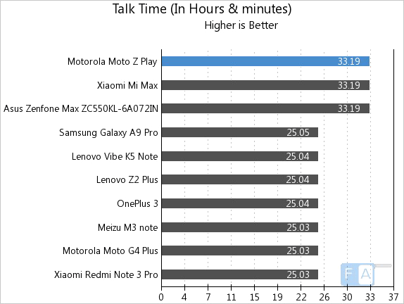 Итог выступления Moto Z Play - 20 часов 20 минут, результат более чем впечатляющий для фаблета с батареей на 3510 мАч.