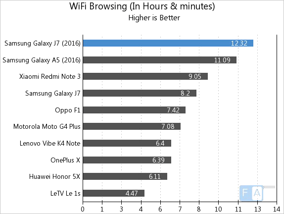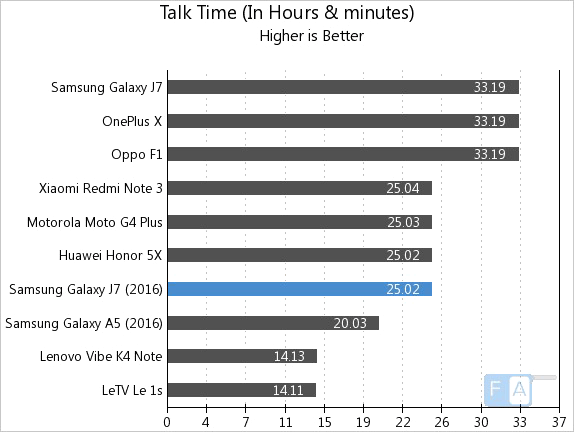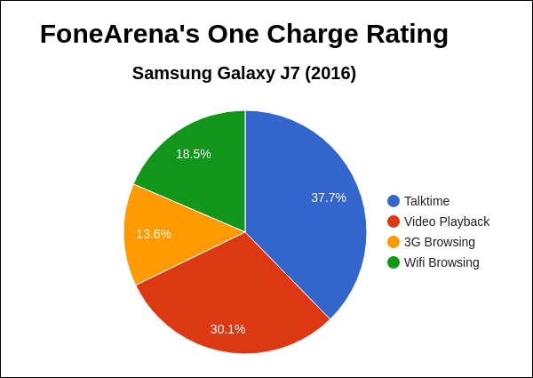 Итог выступления Samsung Galaxy J7 (2016) - 16 часов 23 минуты, что превосходит результат прошлогодней модели Galaxy J7 (15 часов 1 минута).