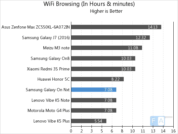 Оригинальный материал о времени автономной работы Samsung Galaxy On Nxt можно найти вот тут, я предлагаю из него всего несколько графиков:
