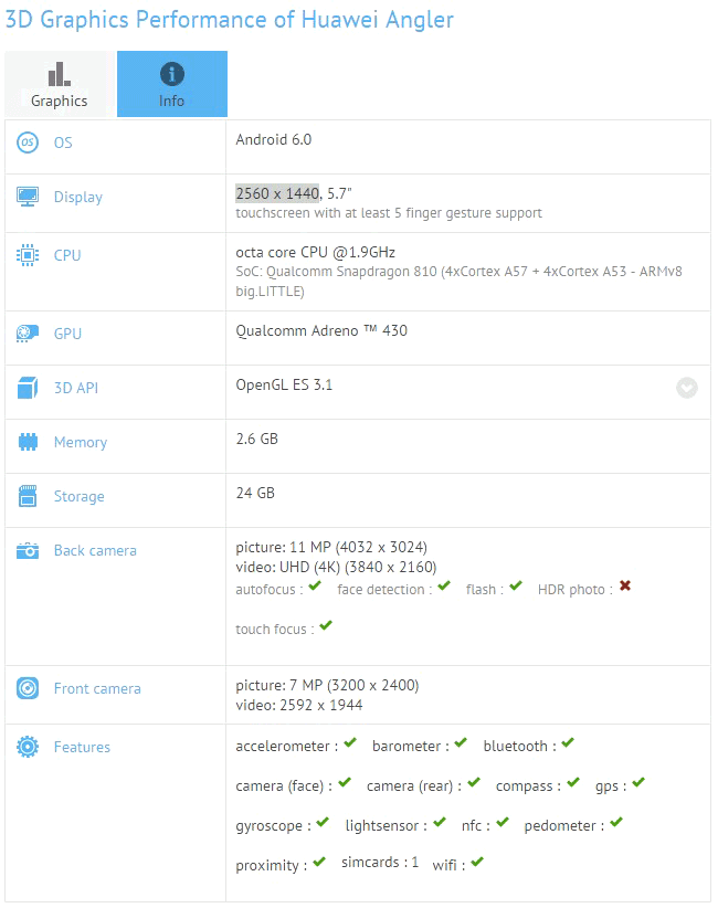 Скриншот ниже получен из базы данных бенчмарка GFXBench, из него мы узнаем кое-какие подробности о Huawei Nexus: