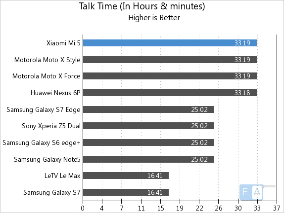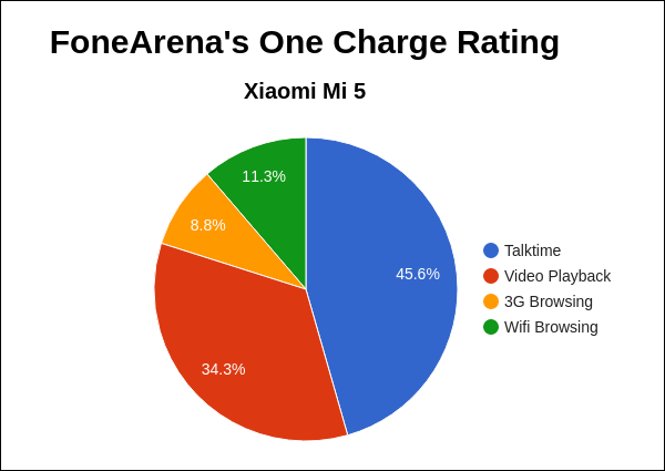 Итог тестов Xiaomi Mi 5 - 18 часов 19 минут, весьма примечательный результат для смартфона с батареей на 3000 мАч. Особенно хорош аппарат в режимах разговора и просмотра видео.